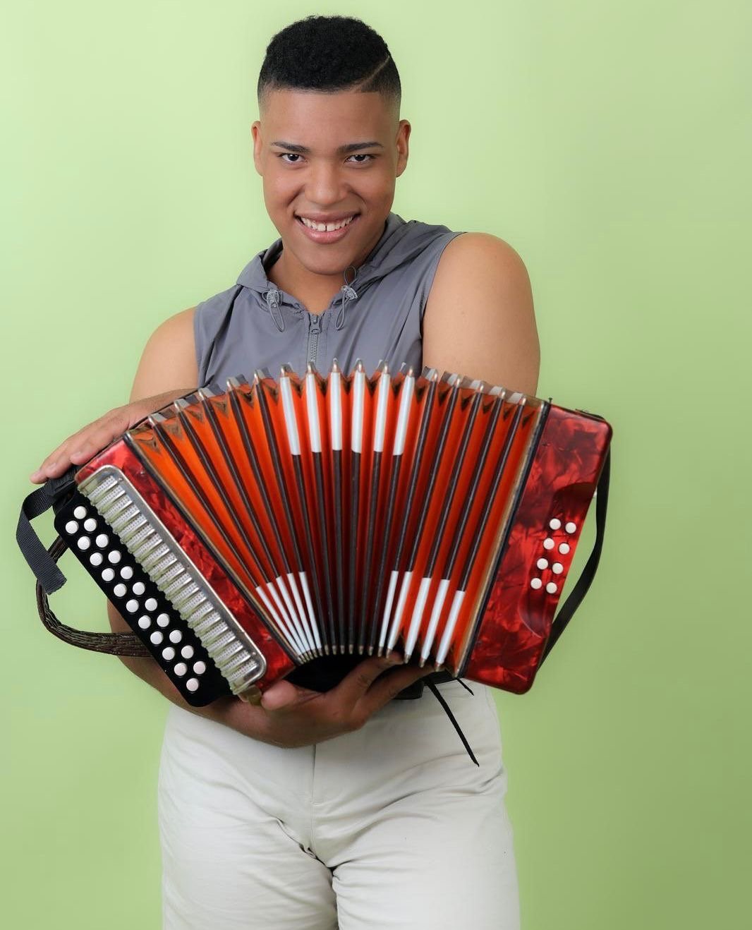 A pesar de contar con un año y meses de experiencia en el acordeón, su talento natural y dedicación han conquistado al público.