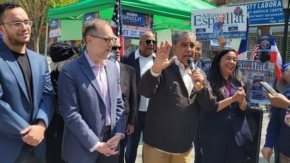 El congresista Adriano Espaillat encabezó un acto de campaña en el vecindario de Hamilton Heights, donde estuvo acompañado por la congresista electa de Nueva Jersey, Analilia Mejía, así como por líderes comunitarios y funcionarios electos locales.