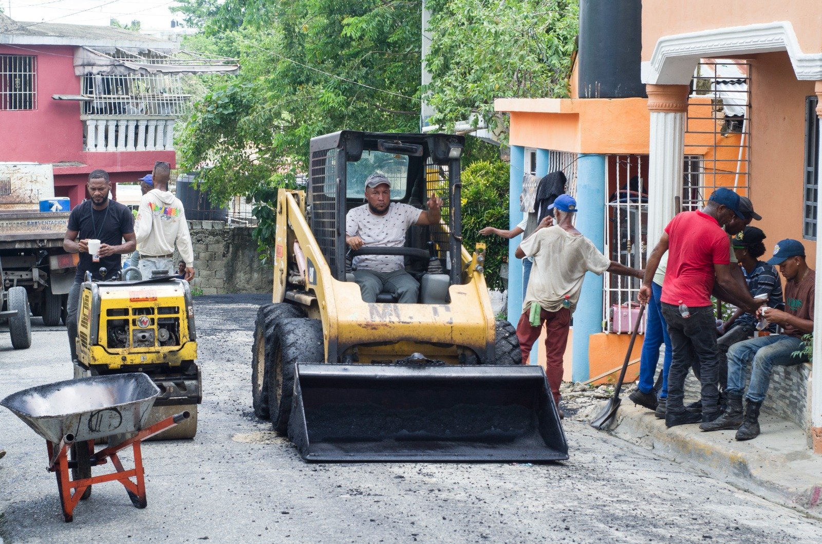 Los trabajos de asfalto y bacheo iniciaron en el sector Casa Vieja, en Santa Cruz de Villa Mella, y luego se extenderán al resto del municipio.