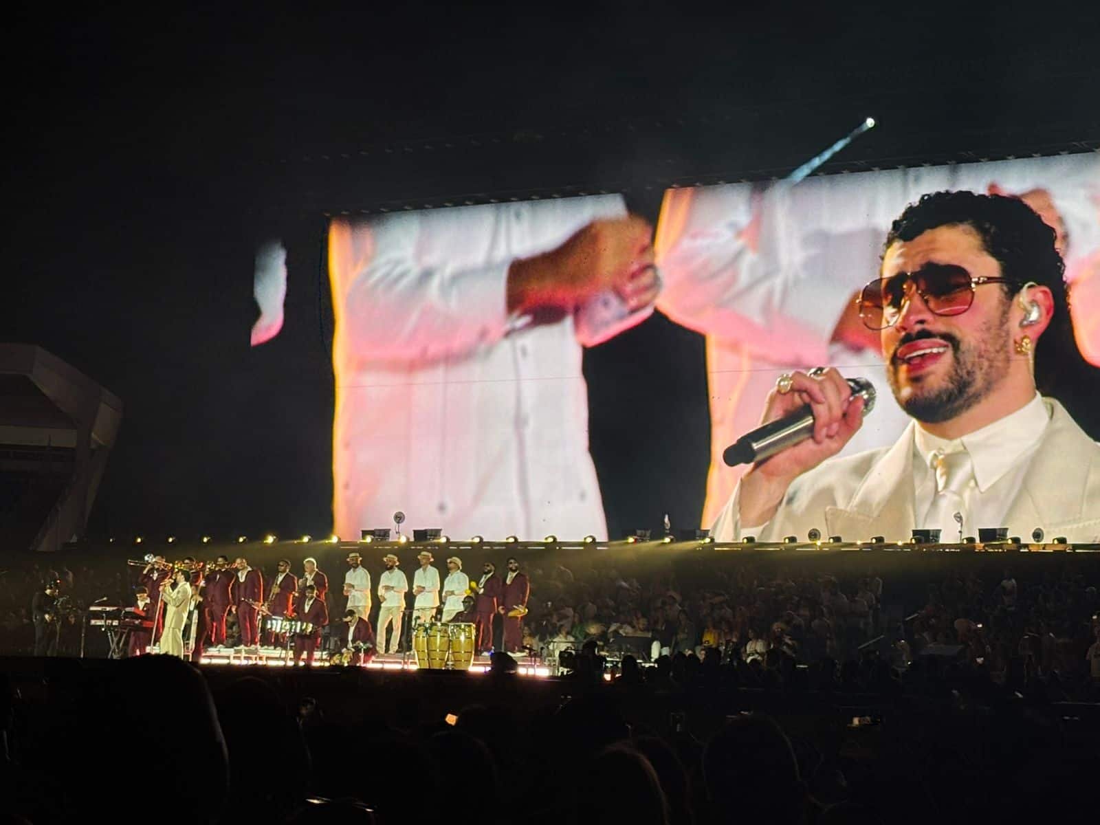 La banda de salsa Los Sobrinos y Los Pleneros de la Cresta son los grupos musicales que le acompañan el escenario, tocando los ritmos de salsa, bomba y plena, que Bad Bunny rescata en su premiado álbum DTMF.
