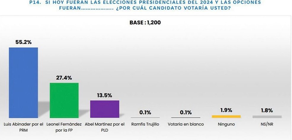 El 55.2% indica que votaría por Luis Abinader para la presidencia de la República en las elecciones presidenciales de mayo próximo.