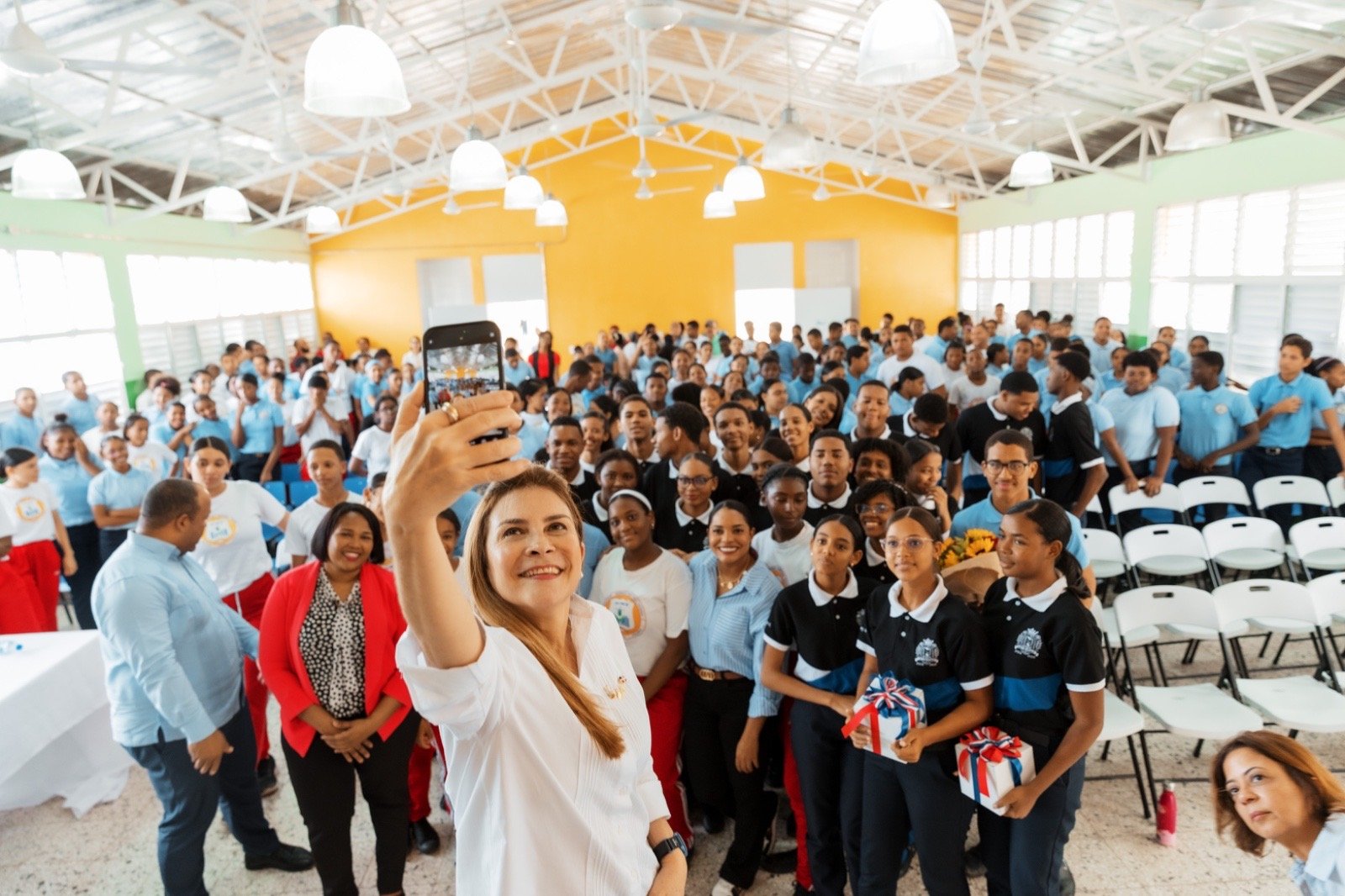 Santo Domingo, DN - La alcaldesa Carolina Mejía conversó con los jóvenes del liceo Profesor Germán Martínez Tavárez sobre el reciclaje, responsabilidad ciudadana y las funciones del cabildo.