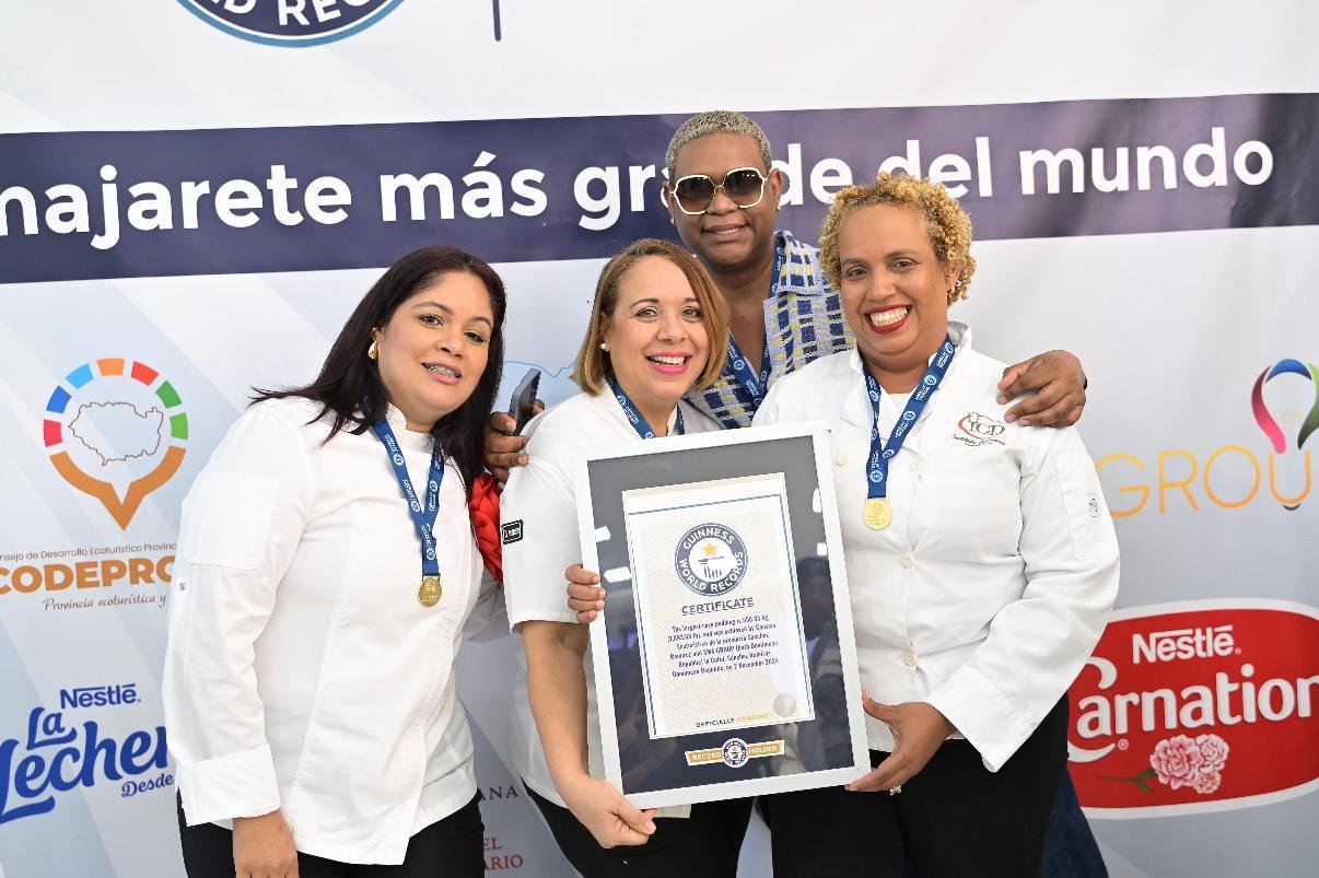 Los jueces que evaluaron el peso, la inocuidad, longitud, el punto preciso de cocción y sabor, reconocieron el liderazgo de la chef Solangel Velázquez y el equipo de 19 colaboradores que le asistió, quienes dedicaron más de ocho horas a la preparación de este dulce emblemático de este país caribeño.
