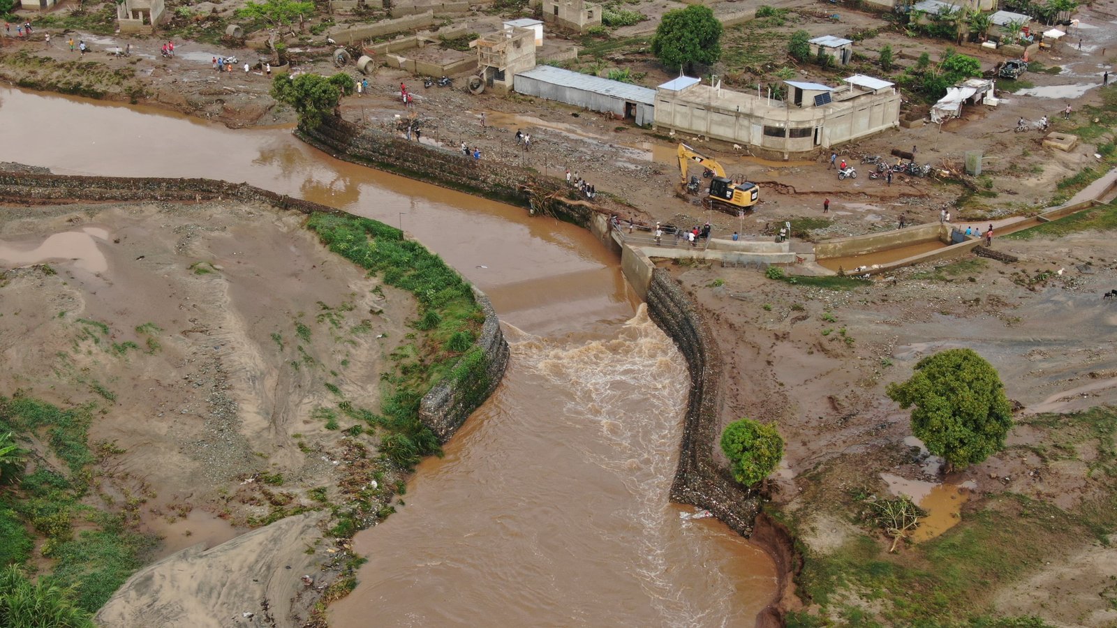 Mientras que en imágenes aéreas, se visualizan los daños provocados por el fuerte caudal a los muros de contención en la toma del canal construido por civiles haitianos de manera ilegal, que pese a advertencias decidieron construirlo en uno de los humedales, considerado como un puntos de desborde al producirse dichas crecidas.