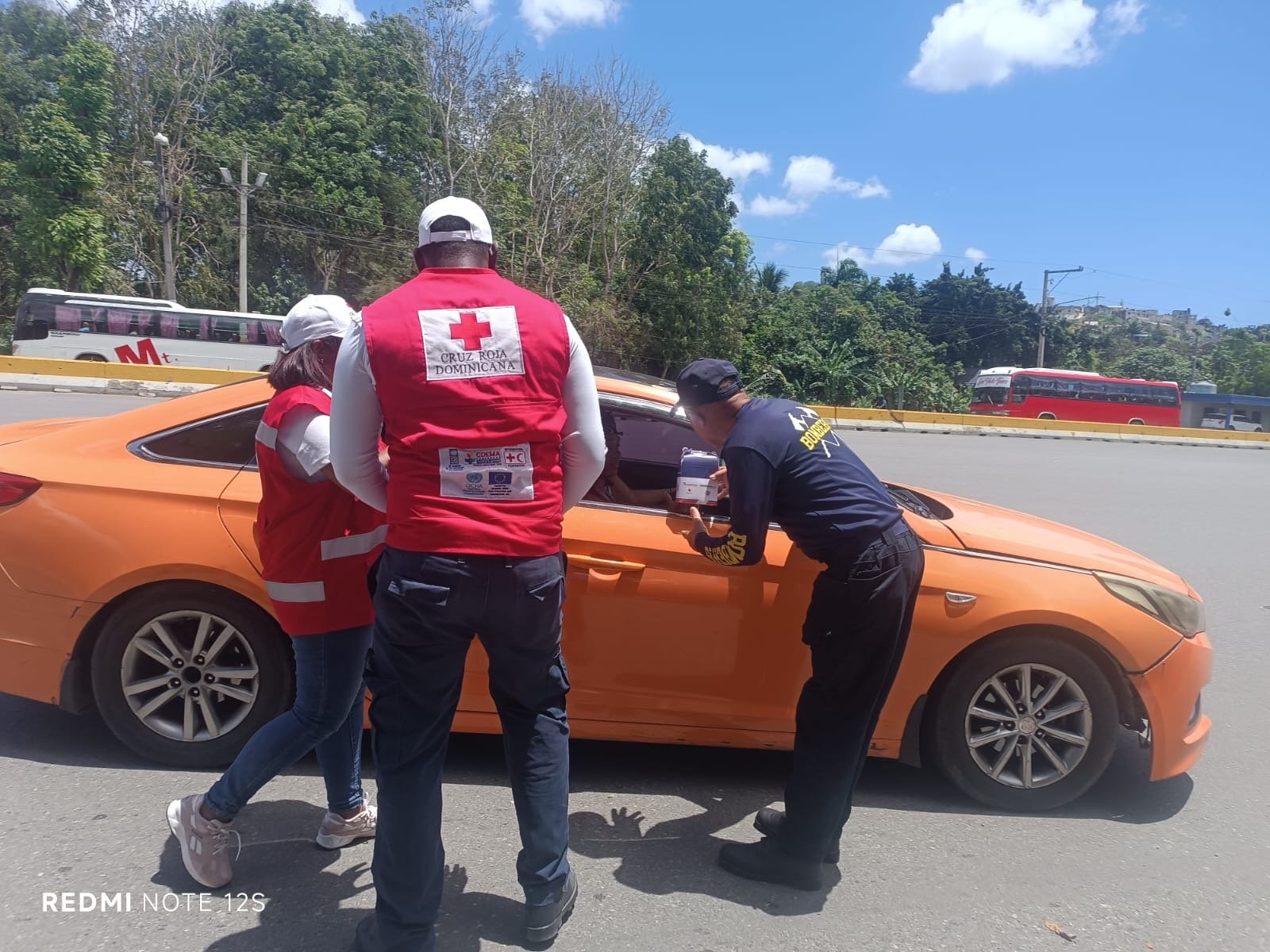 Santo Domingo Oeste. – Como parte de su compromiso con la seguridad y el bienestar ciudadano, la Cruz Roja Dominicana, filial Santo Domingo Oeste, realizó este sábadola entrega de botiquines de emergencia a vacacionistas que se desplazaban por diferentes puntos de socorro del municipio y el peaje de la autopista 6 de Noviembre, en el marco del operativo especial de Semana Santa.