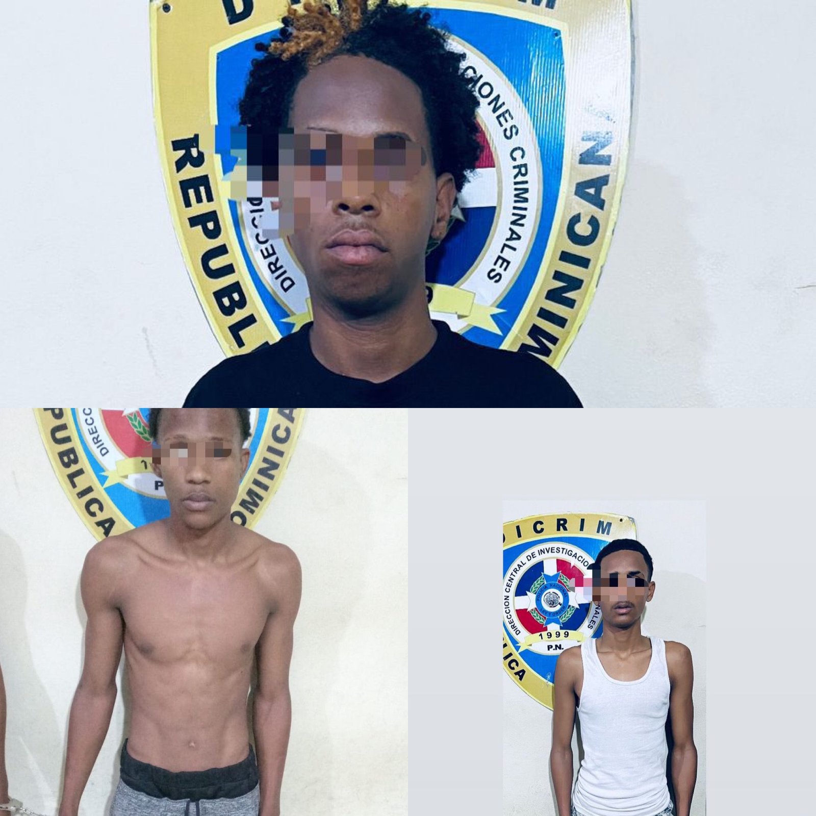 Los detenidos son Brayan Pérez Ramírez, Erick De Paula Valera (a) Ramón y Carlos Frías García (a) El Delivery, quienes eran buscados mediante la orden de arresto No. 973-2025-EMES-07562, por presunta violación a los artículos 265, 266 y 379 del Código Penal Dominicano.