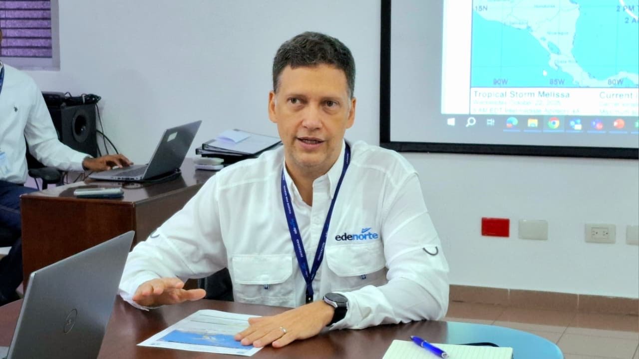 *Gustavo Martínez*, gerente general de EDENORTE destacó que, por la ubicación geográfica del área de concesión de la empresa, estamos históricamente expuestos a eventos atmosféricos, y en el caso de la tormenta Melissa, va a traer muchas lluvias e incrementará las incidencias.