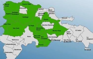 Las provincias en alerta verde son: Monseñor Nouel, San Juan, Monte Plata, Elías Piña, Duarte (especialmente el Bajo Yuna), La Vega, Dajabón, San José de Ocoa, Santiago Rodríguez, Montecristi, Puerto Plata, Santiago, San Cristóbal y Peravia.
