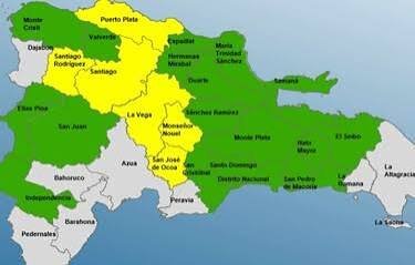 En alerta amarilla se encuentran Puerto Plata, San José de Ocoa, Santiago, La Vega, Santiago Rodríguez y Monseñor Nouel.