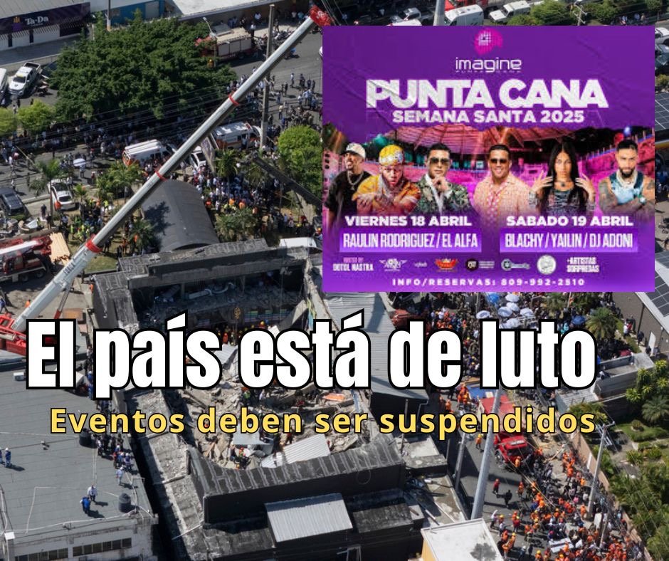 Con la tragedia ocurrida el pasado lunes en la madrugada con el derrumbe del techo de la icónica discoteca Jet Set donde han perdido la vida alrededor de 218 personas, cientos de heridos y desaparecidos, según los ultimos números dado a conocer por el Comité de Emergencia (COE), consideramos que el gobierno dominicano, debe suspender toda actividad fiestera programada para lo que resta del mes de abril.