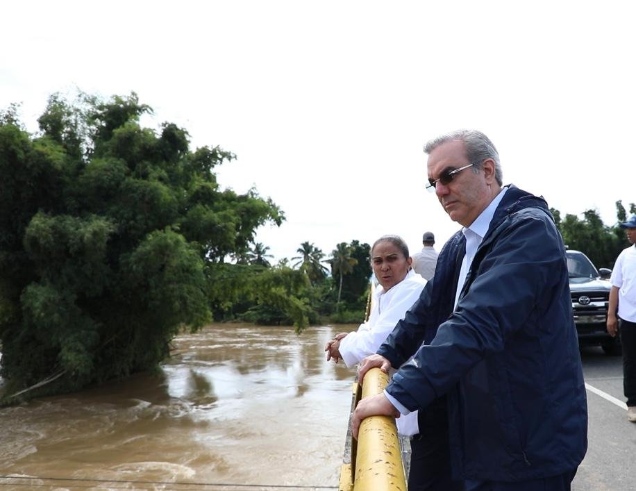 El presidente Luis Abinader recorrió este martes algunas de las zonas que han resultado afectadas por las inundaciones generadas por las lluvias en la provincia Puerto Plata.