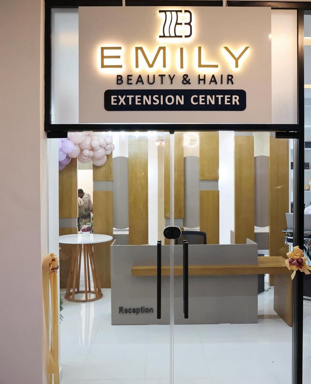 Servicios Emily’s Beauty and Hair Extension Center: Venta y montura de extensiones de cabello, lavado, secado, corte, técnicas de color, tratamientos de keratina, masajes corporales, manicura, pedicura y uñas acrílicas.