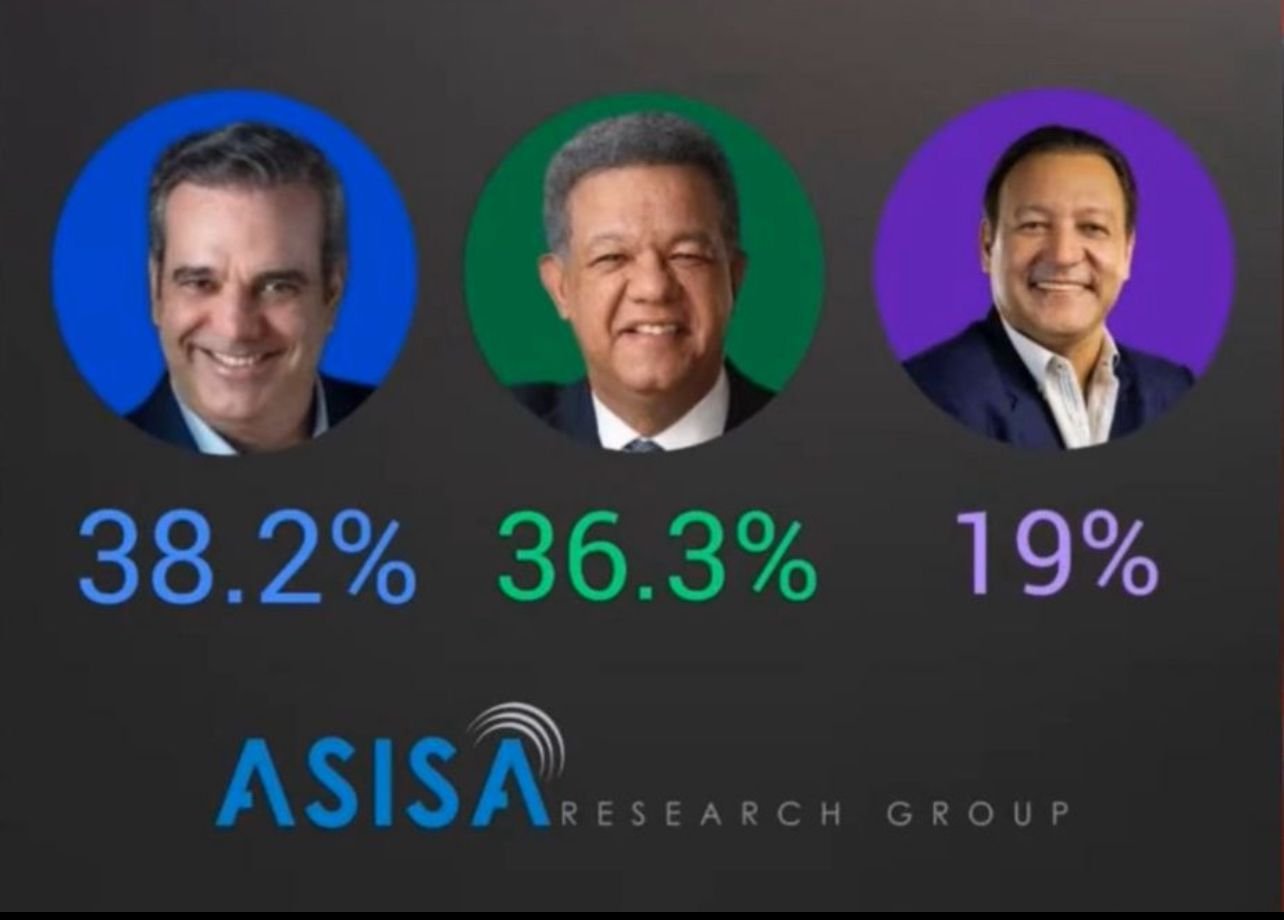 Asisa en su trabajo de campo realizado, precisa que en caso de una segunda vuelta electoral entre Luís Abinader y Abel Martínez, candidato del Partido Morado, Abinader lograría un 46% y Martinez un 40%.