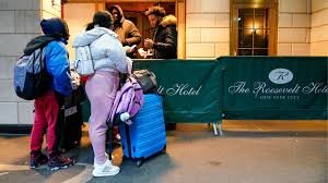 El Hotel Roosevelt, con cerca de 1,000 habitaciones, fue transformado en un centro de recepción para migrantes en mayo de 2023, cuando la ciudad enfrentaba una gran afluencia de migrantes enviados en autobuses desde los estados fronterizos del sur. Desde entonces, más de 173,000 migrantes se registraron en el centro de acogida.