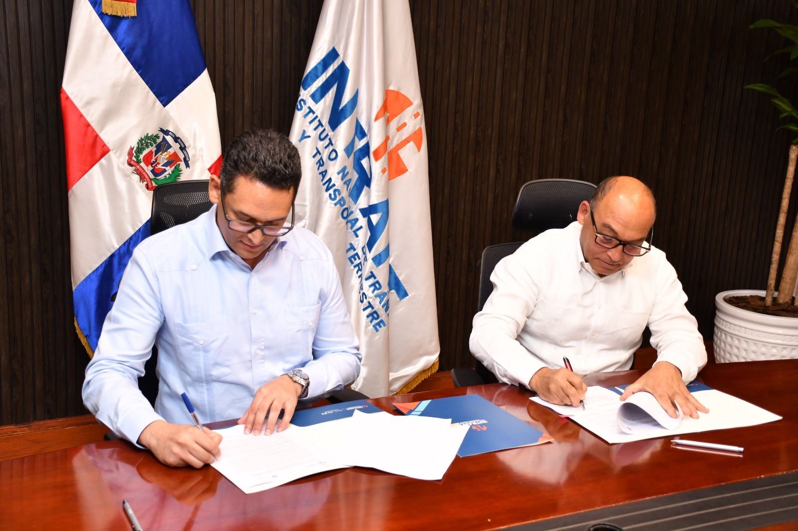 Rolfi Rojas, Presidente de la CPADB y el Director Ejecutivo Interino del Intrant, coronel piloto Randolfo Rijo, ERD, firmaron un acuerdo interinstitucional, para la implementación de estrategias destinadas a mejorar la movilidad urbana, la seguridad vial y calidad de vida en los barrios.