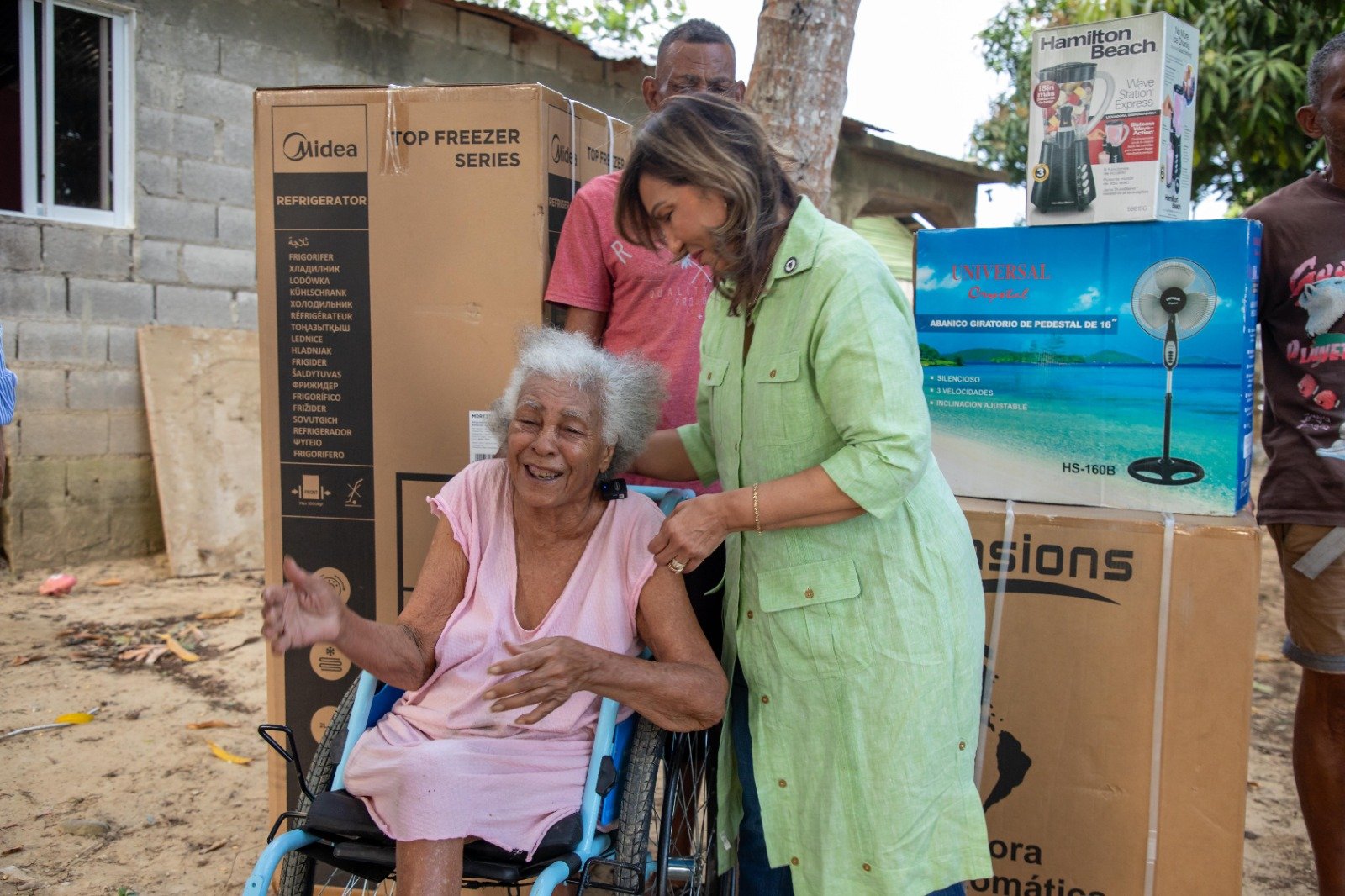 El operativo, que se extendió por tres días, impactó a comunidades de los distritos municipales Veragua, Joba Arriba y Villa Magante, donde fueron entregados enseres del hogar como estufas, tanques de gas, neveras, abanicos, licuadoras y camas, como parte de la respuesta institucional ante la emergencia.