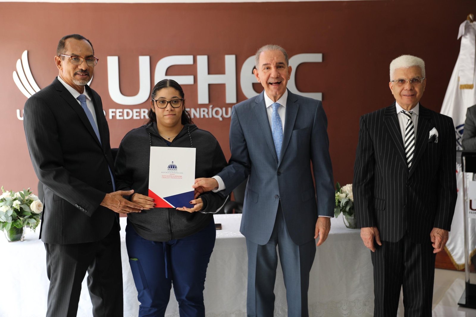 Ministro de Educación Superior, Ciencia y Tecnología (MESCyT) encabeza acto de entrega de 90 becas a estudiantes Universidad Federico Henríquez y Carvajal (UFHEC)