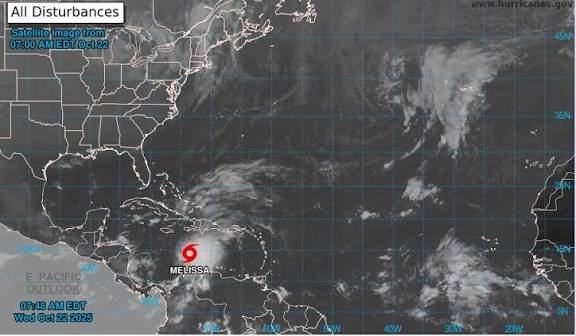 El huracán Melissa continúa fortaleciéndose sobre aguas del mar Caribe y podría convertirse en huracán categoría 3 este domingo, según alertó la ingeniera Gloria Ceballos, directora del Instituto Nacional de Meteorología (Indomet).
