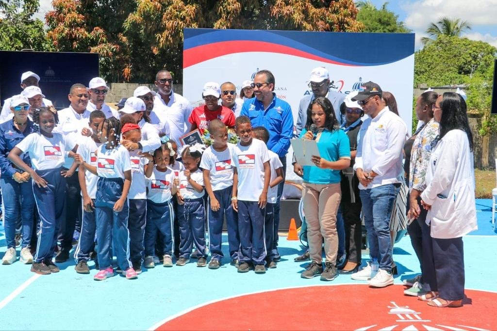 El acto se celebró en la escuela Cristóbal Alvino, donde estudió la vigente campeona mundial de los 400 metros planos, y en el que INEFI entregó utilería deportiva al centro educativo y mochilas a estudiantes de la escuela.