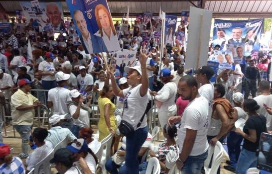 Bajo la consigna de "Luis 4+" cientos de personas se encuentran en el Multiuso de Sabana Perdida a la espera de que Luis Abinader llegue a su primer acto proselitista.