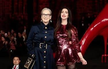 "Esta película ofrece mucho corazón e inteligencia, pero también mucha diversión y alegría", dijo Hathaway, quien desfiló junto a Streep al ritmo de ´Vogue´, el tema más reconocido del filme, que se proyectará en las salas mexicanas el próximo 30 de abril.