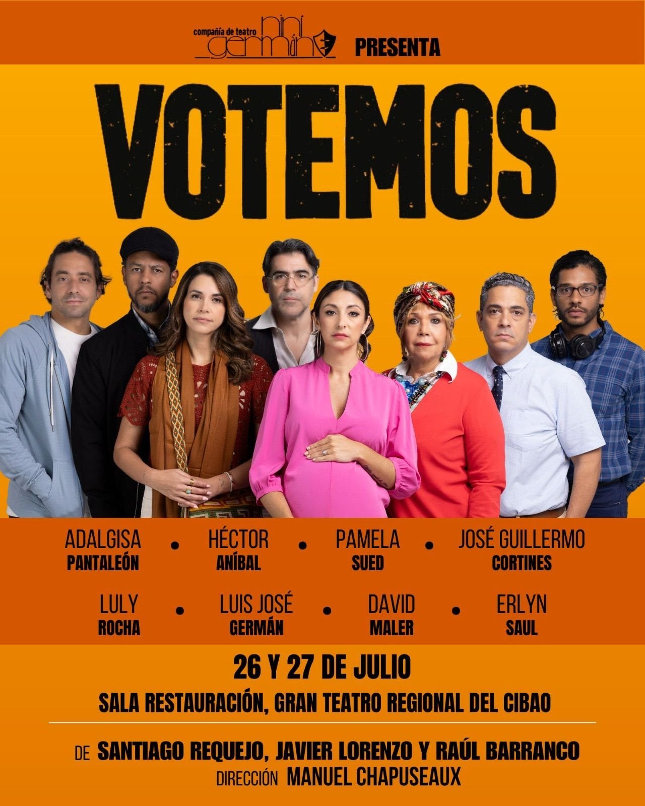 “Votemos” cuenta con las actuaciones de la gran Adalgisa Pantaleón, Luly Rocha, Pamela Sued, Héctor Aníbal, José Guillermo Cortínes, David Maler, Erlyn Saúl y Luis José Germán, bajo la dirección del destacado actor y director Manuel Chapuseaux.