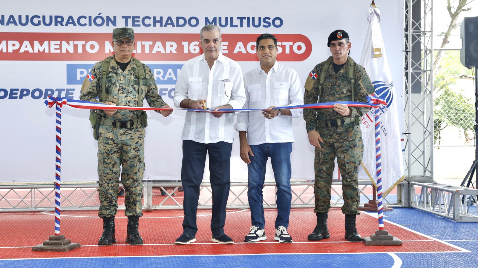 Presidente Abinader y ministro Kelvin Cruz inauguran techado multiuso en Campamento Militar