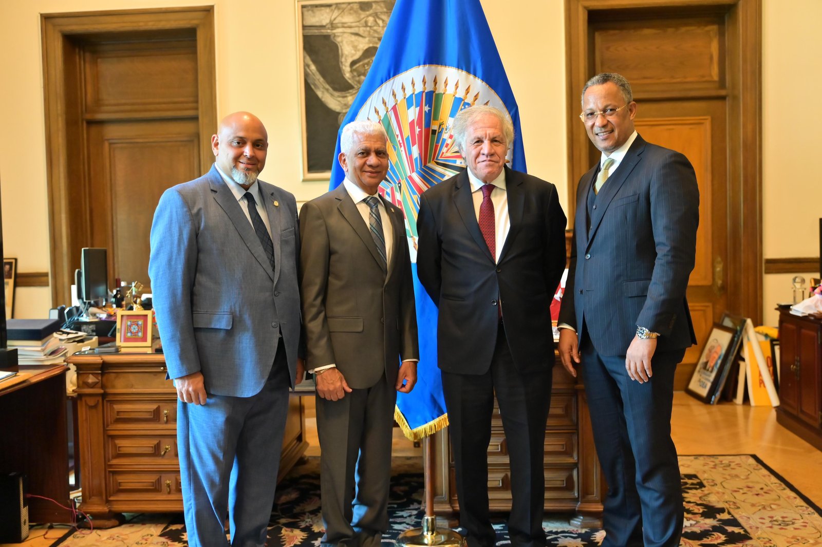 WASHIGTON.- El presidente del Senado, Ricardo de los Santos acompañado de otros senadores, se reunió con Luis Almagro, secretario general de la Organización de Estados Americanos (OEA), en la sede del órgano internacional para dar inicio a los trabajos de organización del “Parlamentos y Prosperidad para las Américas”, a realizarse del 31 de julio al 2 de agosto en la República Dominicana.