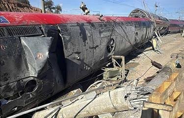 Vista del tren Iryo que descarriló ayer e impactó contra un Alvia, dejando al menos 39 víctimas mortales. El presidente de Renfe, Álvaro Fernández Heredia, ha advertido este lunes de que las razones del accidente ferroviario tardarán días en conocerse, aunque ha alejado la posibilidad de que se haya debido a un exceso de velocidad o un fallo humano. (EFE)