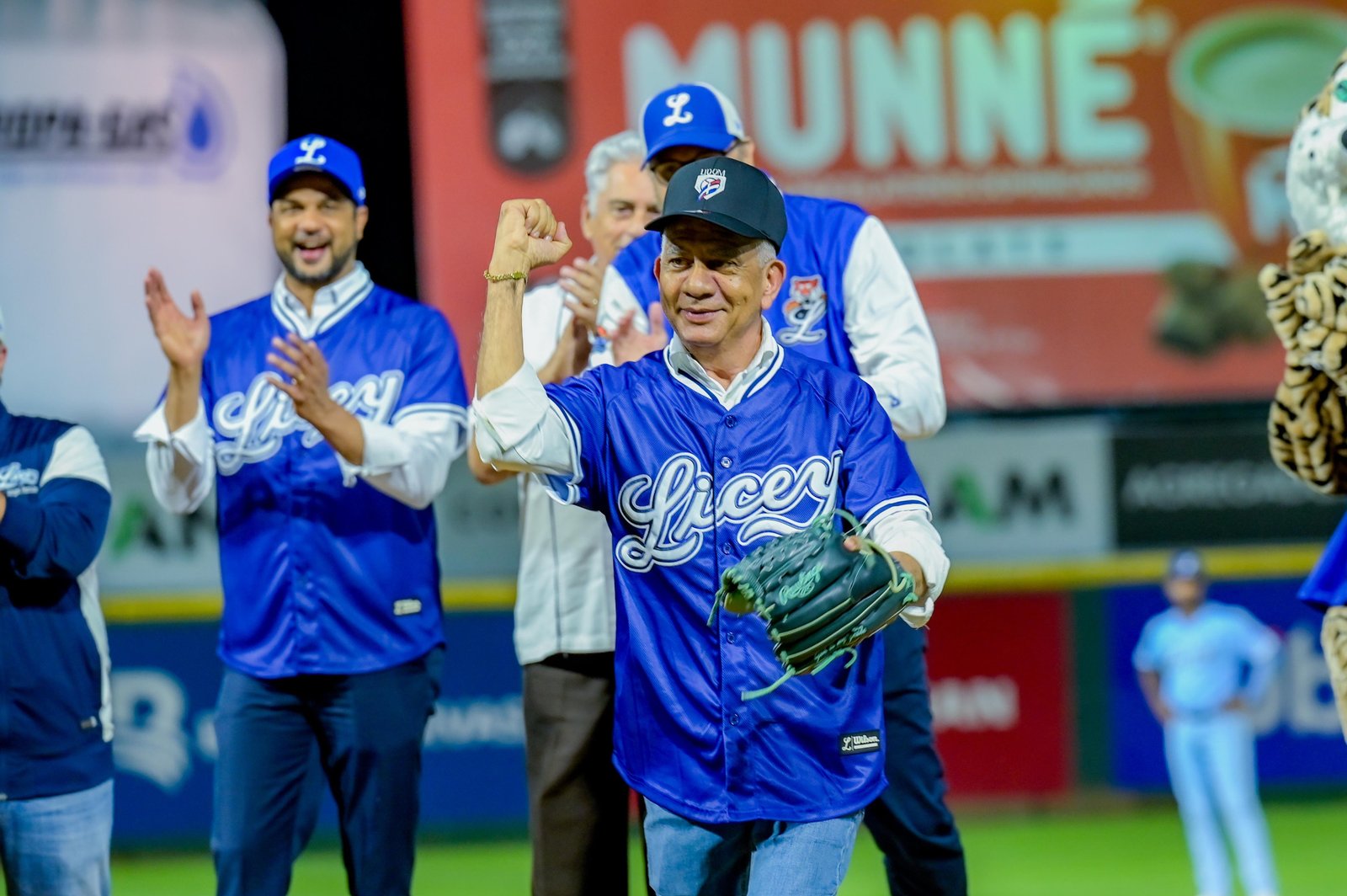 Ricardo de los Santos también lanzó la primera bola durante el partido entre Tigres del Licey y Águilas Cibaeñas.