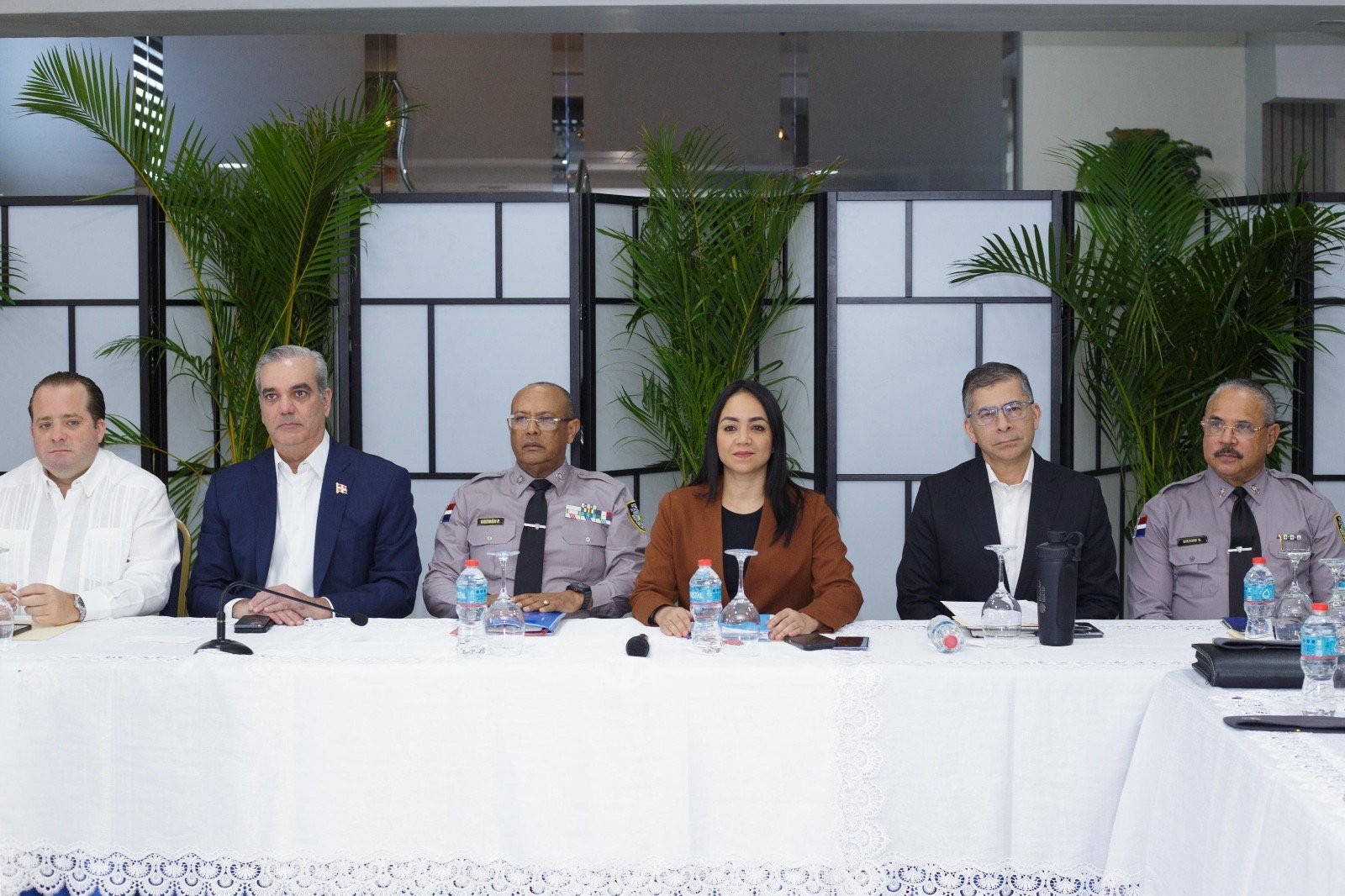1. La ministra de Interior y Policía, Faride Raful, junto al presidente Luis Abinader y otras autoridades durante la reunión de seguimiento al Plan de Seguridad Ciudadana.