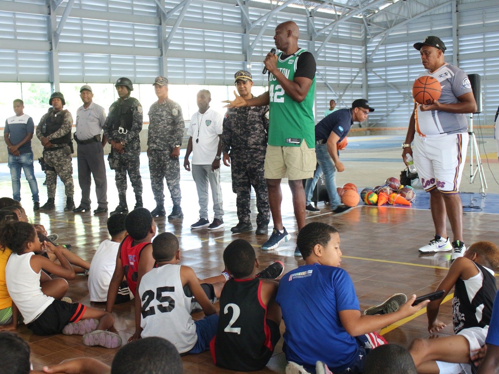 Tito Horford realiza clínica deportiva a niños del Nuevo Domingo Savio, a través de la PN y el programa “De Vuelta al Barrio”