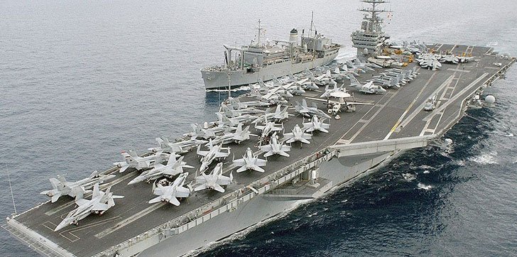 El grupo de ataque del USS Carl Vinson, un buque de propulsión nuclear de la clase Nimitz, incluye varios escoltas y aeronaves de combate avanzadas