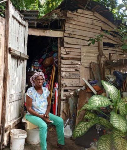 La señora Bienvenida vive sola en una pequeña casa de zinc y madera, la cual no brinda la protección básica necesaria, ya que “llueve dentro y escampa afuera”. Enfrenta esta difícil realidad sin el apoyo de familiares, lo que la hace aún más vulnerable.