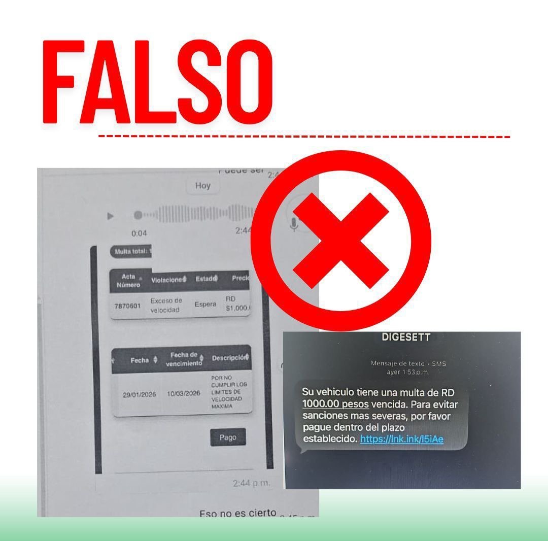 La Dirección General de Seguridad de Tránsito y Transporte Terrestre (DIGESETT) alertó a la ciudadanía sobre la circulación nuevamente de mensajes de texto fraudulentos (SMS) que util