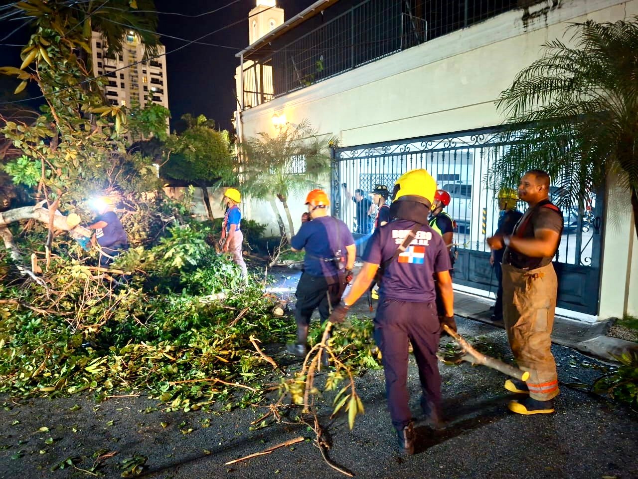 Santo Domingo, DN – El Cuerpo de Bomberos del Distrito Nacional y la Dirección de Gestión Ambiental de la Alcaldía del Distrito Nacional retiraron 21 árboles caídos durante la t